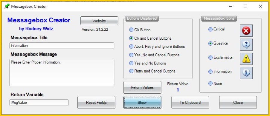MessageBox Maker is a very useful program for programmers. It makes the creation of Messageboxes simple and easy to create.