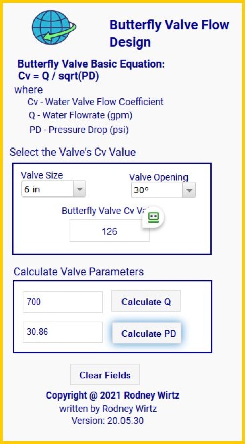 By using the Cv webapp above, in conjunction with the Cv factors for a butterfly valve and the maximum allowable pressure drop, the resulting flow can be determined.